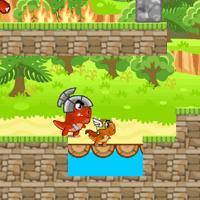 (Platform) The big and little dino is back to dinosaur time.This time they are powered up with new boost on armor and weapon. In the world of dinosaur,the big and little dino need to collect all the meat in the area to survive from starvation. The big dino has the ability to attack with his deadly claw,and the little dino can shoot fireball to kill the enemy. Help both of them collect all the meat on the platform. Watch out for other animals on the platform. Enjoy!