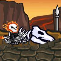 (Driving)The cool skull is going to travel through the hell. He is riding his coolest bike and need to light up all the blue flame in order to open the portal to next location. Help the skull achieves this without falling off from the bike. Have fun!