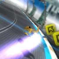 Drive and race around the track in your futuristic hovercraft.